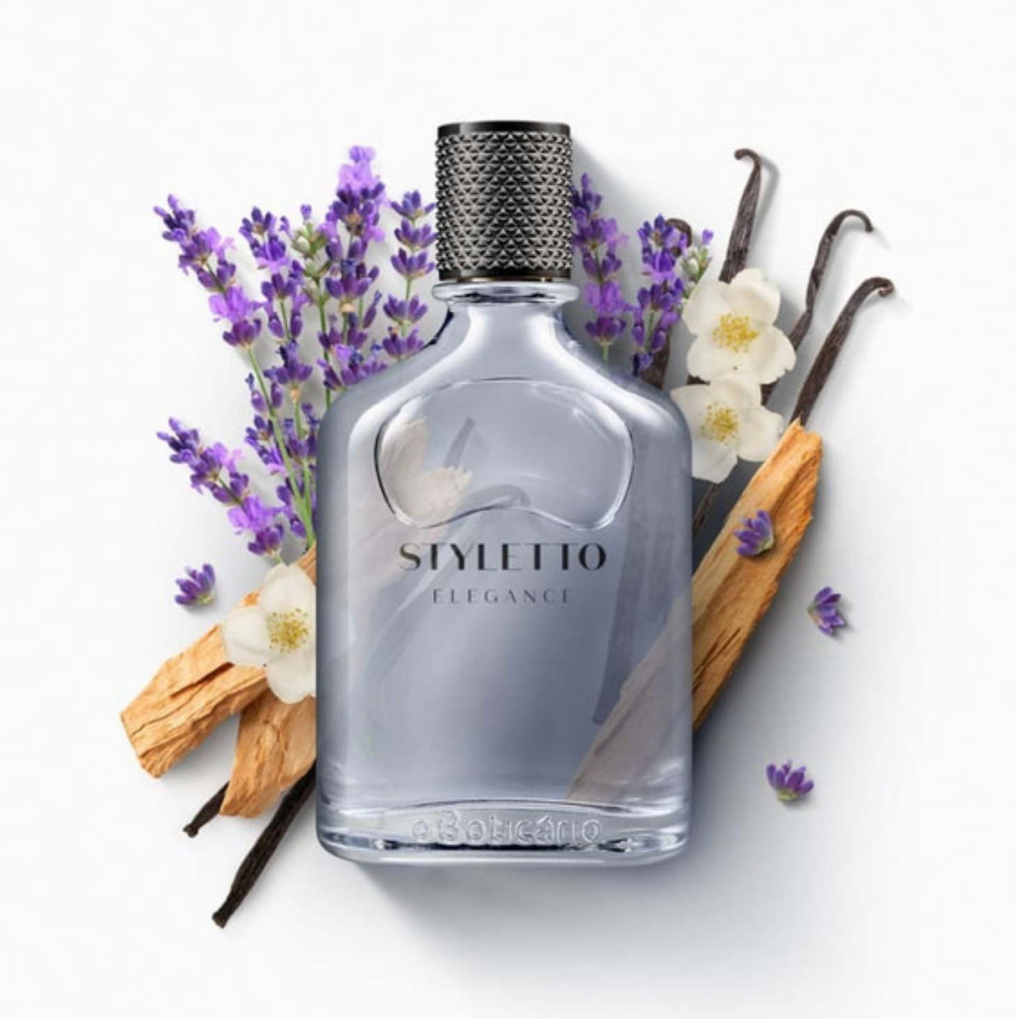 Styletto Elegance é um perfume masculino sofisticado que combina a frescura das notas aromáticas com madeiras (Cedro e Vetiver) numa embalagem clássica que é a prova de que a elegância nunca sai de moda.