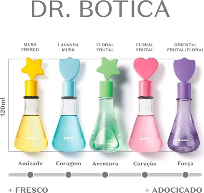 Dr. Botica Poção do Coração é um perfume infantil que promete espalhar carinho e amor sempre que for aplicado. Para transformar os momentos em pura magia e felicidade, surgiu o Dr. Botica, o mago da harmonia que prepara poções super cheirosas com muitas histórias para contar, com a ajuda do seu amigo fiel e assistente, o passarinho Fido.