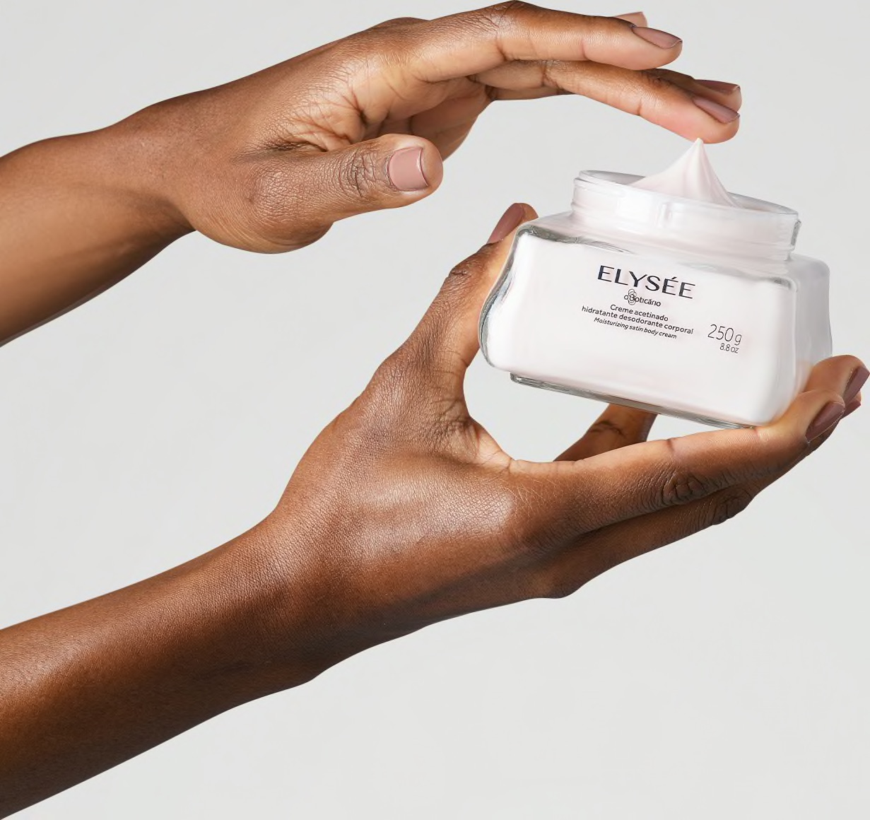 O Elysée Creme Hidratante Acetinado tem uma textura cremosa única com a fragrância marcante e feminina do Elysée Eau de Parfum. Com um elevado poder de hidratação, o creme acetinado forma uma película protetora sobre a pele, deixando um toque macio e sedoso que evita a desidratação causada pelo sol ou pelo clima frio e seco.