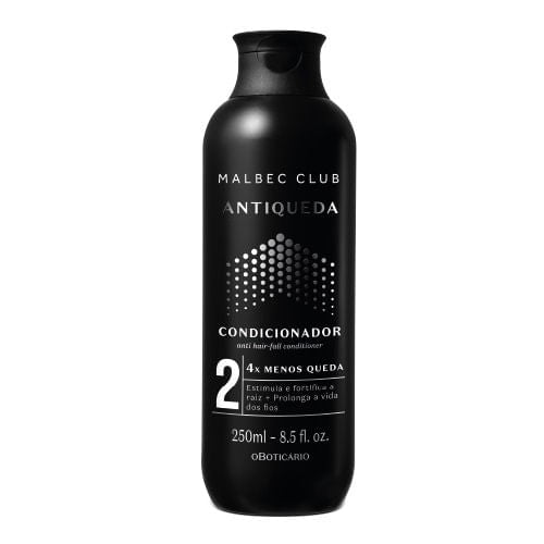 O Condicionador Malbec Club Antiqueda é ideal para o homem que sofre com queda de cabelo, já que reduz a queda e engrossa os fios, aumentando a densidade do cabelo. A sua fórmula conta com ativos potentes como o BaicapilTM* que minimizam a queda dos fios e devolvem a tua autoestima, além de os deixar profundamente condicionados. O condicionador antiqueda masculino de Malbec Club é o que precisavas para ter a tua confiança de volta. Ele oferece: